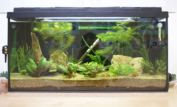 Mein Aquarium ist mit Hellem Bodenkies versehen, halbwechs dicht bepflanzt und läuft seit drei Wochen.