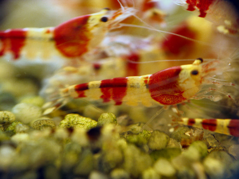 Mit unterschiedlicher gestaltung von Kies, Pflanzen und Garnelen.