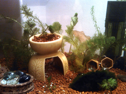 Vorerst habe ich den Kleinen eine schöne Wurzel zugelegt, in der sie sich verstecken können. Auch neue Pflanzen sind dazugekommen.