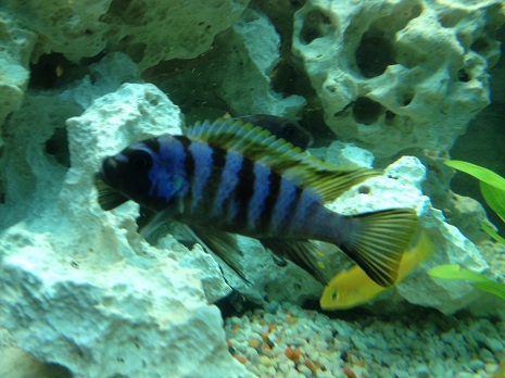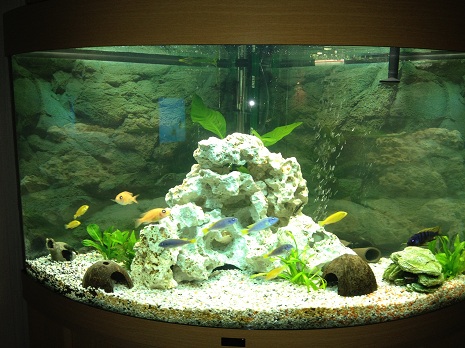 Rein optisch finde ich das Becken aber recht gut. Allerdings gehören in ein Malawiseebecken (und dies steht ja in der Überschrift zu dem Aquarium), in dem vorrangig Mbunas (Labidochromis) gehalten werden, viel mehr Steine.