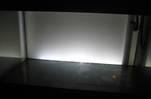 Blick auf die Rückwandbeleuchtung im leeren Aquarium