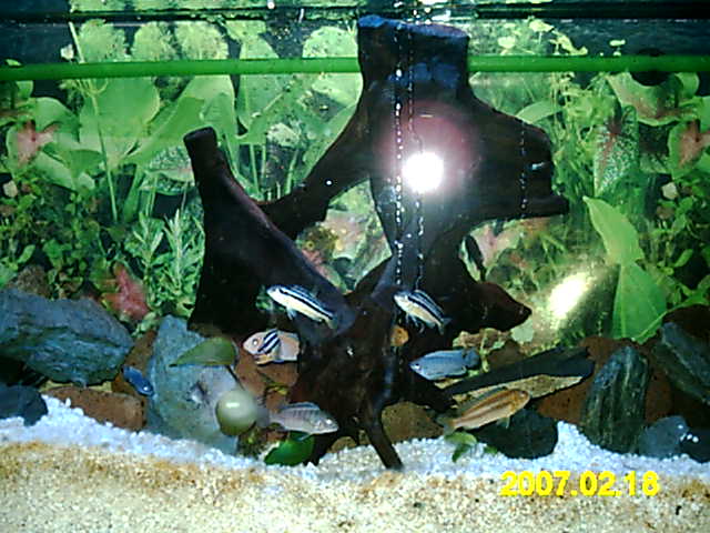 Also nimm bitte die Skalare raus, die fühlen sich da nicht wohl. Du soltest die Wurzeln raus nehmen und dafür noch mehr Steine rein tun, wie es für ein naturnahes Malawiaquarium angebracht ist.