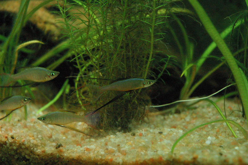 Diese Fische mögen stark bepflanzte Becken, die aber noch genügend freien Schwimmraum bieten sollten. Meine Exemplare hatte ich zunächst in einem kleinen, völlig zugewucherten Becken, wo sie mehr oder weniger unbeweglich vor sich hindümpelten. Erst als ich die Pflanzen stark ausgedünnt hatte, zeigten sie ein lebhaftes Schwimmverhalten und das Männchen begann zu balzen. An Pflanzen empfehlen sich vor allem feinfiedrige Arten wie Cabomba und Javamoos aufgrund der Tatsache, dass die Eier sich mit feinen Fäden an die Blätter anheften. Solche Pflanzen werden von meinen Fischen auch als Laichplatz bevorzugt. Der Bodengrund kann aus Sand oder Kies bestehen.