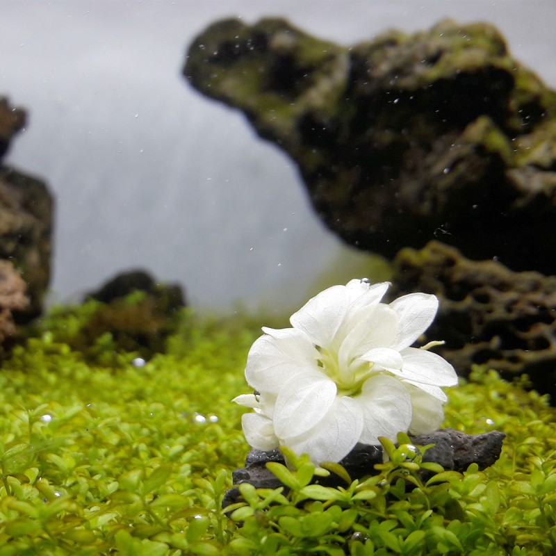 Bodenbeschaffenheit: Als Aufsitzerpflanze passt sich die Anubias barteri var. nana 'Snow White' gut an das Wachstum auf harten Oberflächen wie Wurzeln, Steinen oder Dekorationen an. Die Pflanze kann auch im Bodengrund gepflanzt werden, wobei darauf geachtet werden sollte, dass der Rhizomteil nicht vollständig eingegraben wird, um Fäulnisbildung zu vermeiden. Ein feiner, nährstoffreicher Bodengrund ist für diese Pflanze von Vorteil.